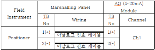 2) AO Module 로 부터의 출력신호를 Field Instrument가 받아짐